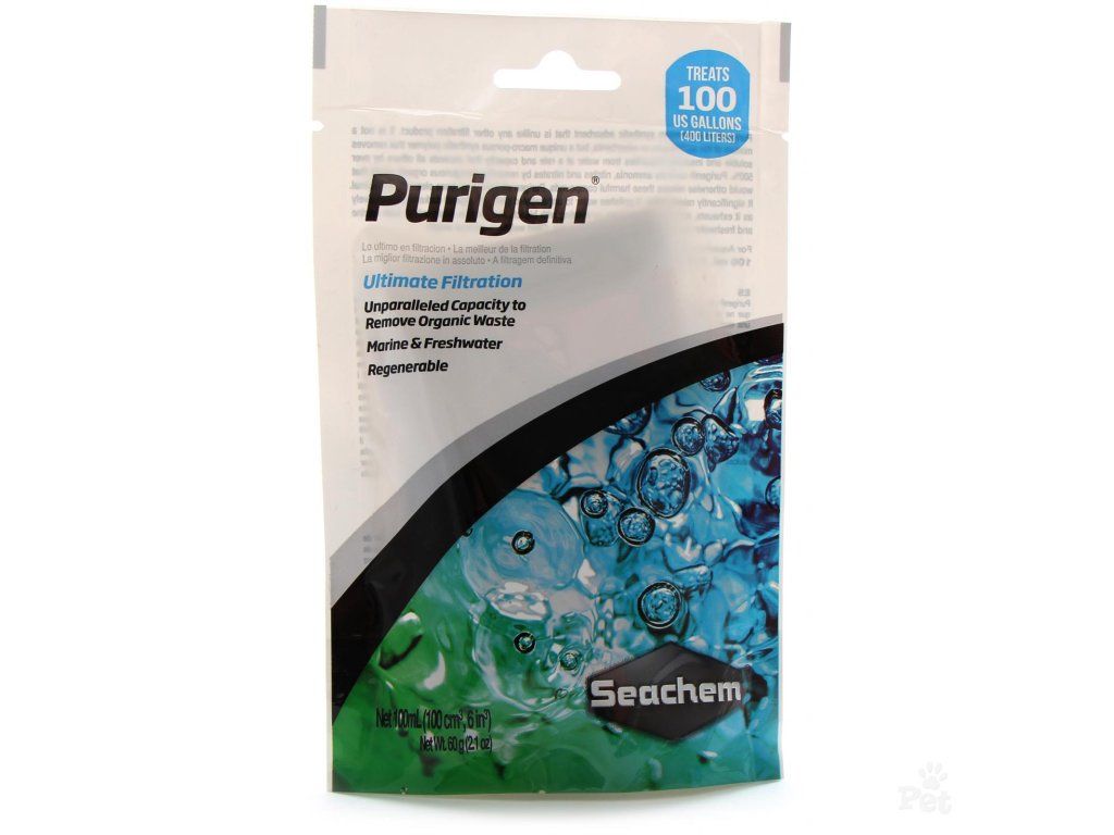 Použití: Purigen je už ve filtračním sáčku. Ten vložte do akvarijního filtru. Každý 1 litr ošetří 4000 l vody po dobu šesti měsíců.